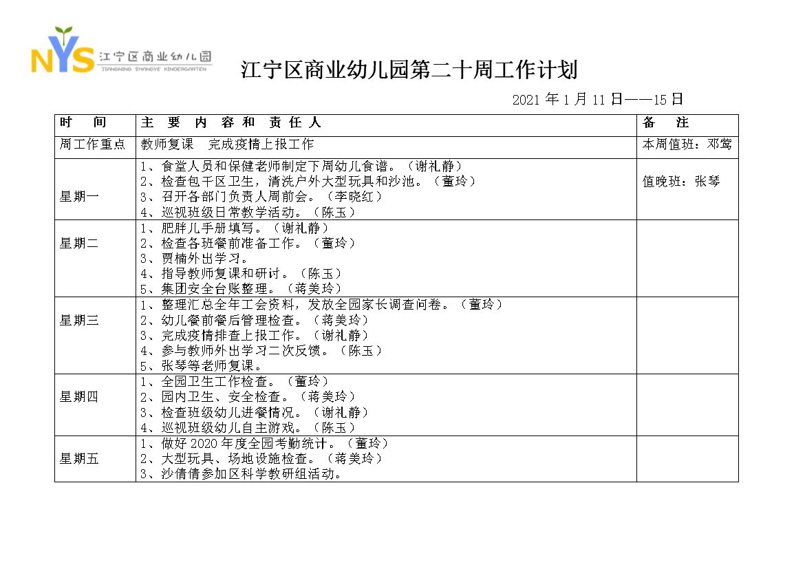 江宁区商业幼儿园第二十周工作计划
