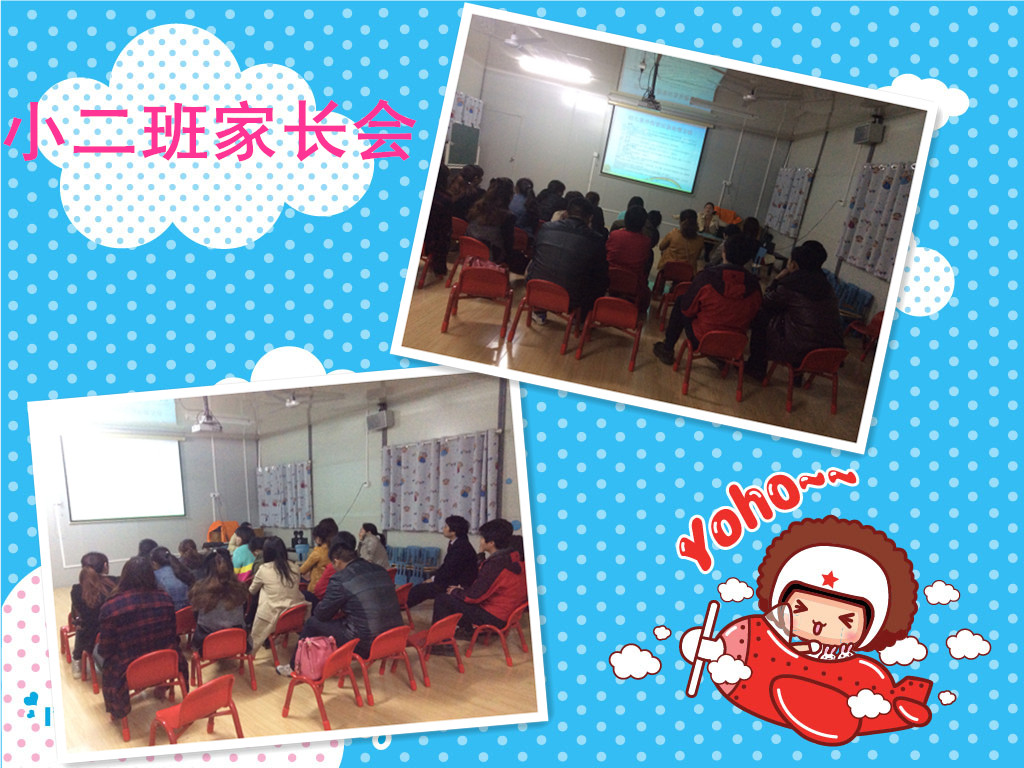 为了增进家长与教师之间的联系,让家长了解幼儿在园情况,同时老师也通过和家长的语言交流,了解孩子在家里的情况。我园小班年级组于2014年4月28日晚上18:00点在幼儿园开展了小班年级组下学期家长会。