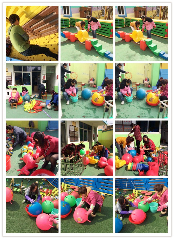 预防春季传染病--全园齐上阵对户外大型玩具进行清洁消毒