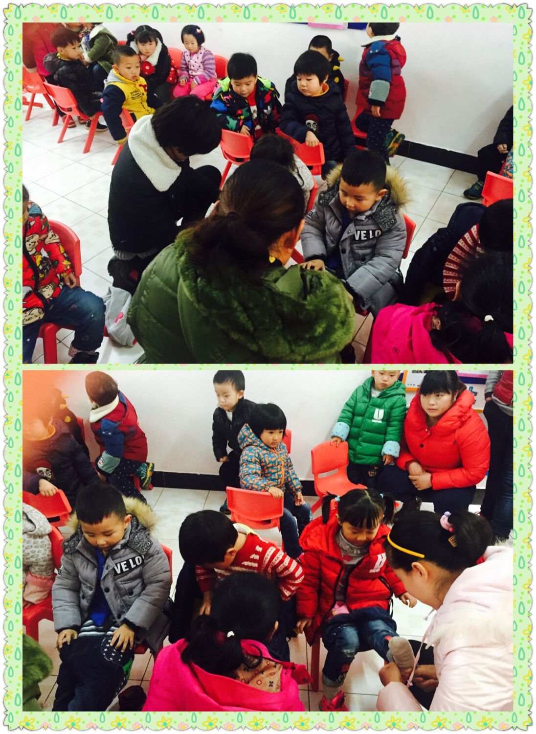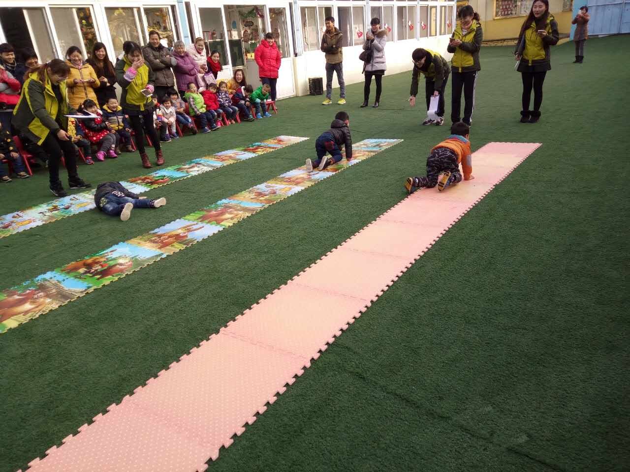 在2014年12月30号中迎来了小班迎新年亲子运动会在本届运动会中首先进行了爬爬乐比赛,小朋友们在垫子上玩得不亦乐乎,看,他们笑的多开心啊!接着,家长们进行了抢圈的游戏,小朋友们在旁边大声得为自己的爸爸妈妈加油,最后在班上举行了穿衣服大赛,小小的衣服和裤可把爸爸妈妈累这了。