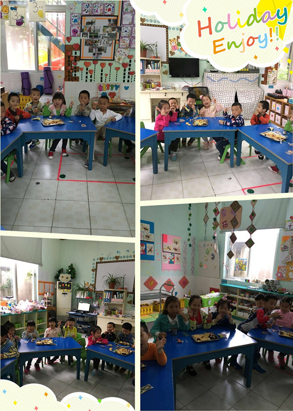 为了让孩子们感受节日的气氛,班级布置了墙式。节日当天幼儿准备了许多节目,有的唱歌、有的跳舞、有的讲故事,还有的分享自己带来的食物,整个活动幼儿积极参加,很开心!