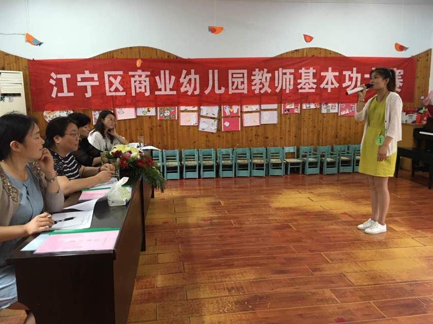 今年,我们进行了分层分类比赛,有全体教师的业务知识书面大赛、40周岁以下唱歌单项基本功大赛、新教师集体教学活动、技能技巧全项大赛——写、画、弹、唱、说、跳。6月20日先期举行了教师的《指南》书面知识问答,老师们经过平时的集体互动式学习加上《指南》的自主学习,在考试中,都发挥了超常水平。6月22日-6月23日进行了新教师集体教学活动大赛。她们是三年内的新教师,她们在工作中有着火一般的热情。她们都做足了准备,有的老师不厌其烦地试教,力求以最好的状态来“迎战”。经过1-2年的教学经验储备和班主任及其他老教师的指导,一分努力一分收获,今年的新教师集体教学活动和去年相比整体水平有了明显的提高。6月25日进行了唱歌单项和新教师全项的技能技巧大赛。大赛中,我们邀请了江宁区机关幼儿园明园长、江宁区示范幼儿园吴园长和江宁区天元城幼儿园陶园长。当天,比赛场面激烈、老师们个个准备充分,纷纷登台展示出自己优美的舞蹈、动听的歌喉、熟练的琴艺;在命题画创作中,老师们用灵巧的双手,创作了一幅幅充满童真童趣的作品。开展此次活动让每个教师在自身原有基础上都得到了进一步的提高。