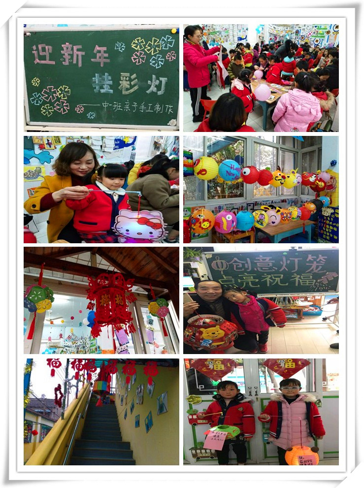 大红灯笼庆元旦,鞭炮声声迎新年!灯笼鞭炮既继承优秀传统文化,也承载着喜庆,承载着幸福,是人们释放感情 , 陶冶情操,丰富生活的方式。中班年级组举办了“民间灯笼” 亲子制作活动。孩子们和爸爸、妈妈、爷爷、奶奶一起自己制作灯笼,自己把灯笼挂在幼儿园走廊里庆祝节日,孩子们通过挂灯、观灯、赏灯、说灯,不仅有制作过程的成功体验,更感受12月份的天气虽然寒冷,但是孩子们同家长们认真的制作灯笼,现场气氛浓烈,处处洋溢着孩子们、家长们的欢声笑语,丝毫感觉不到冬天的寒冷。快乐,合作,参与是孩子和家长们此次活动的主题。家园合作是幼儿教育的现实需要,重视通过多种途径,不断密切家园的合作伙伴关系。特别是我园的各种亲子活动,内容多样、形式不断创新,让家长在繁忙的工作得到放松,把教育孩子的责任性事务融于享受天伦之乐、增进亲子感情之中,很好地起到向家长传递新的教育理念,实践新型亲子教育模式的作用。
