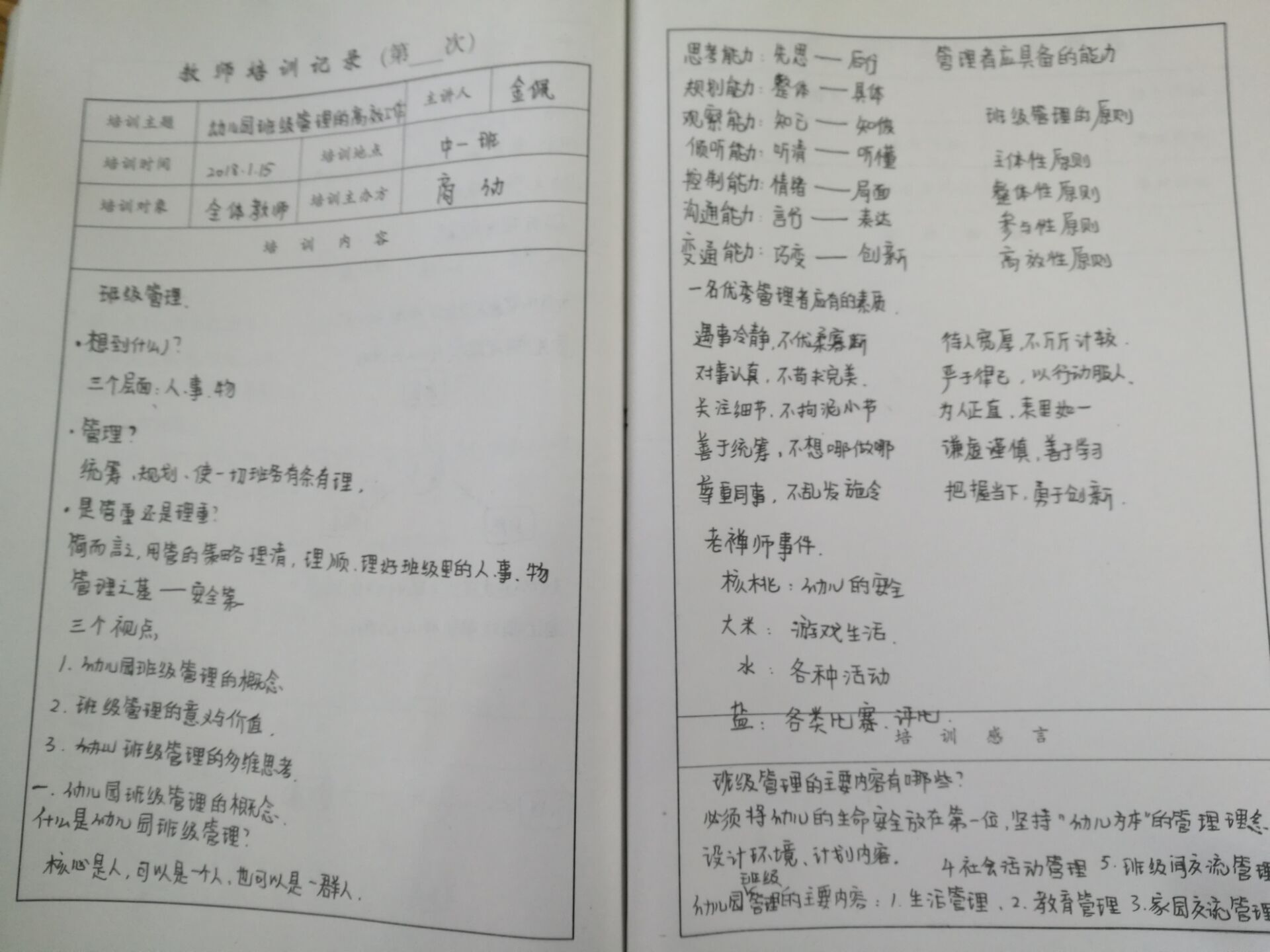 我园金佩老师给大家推广讲座《幼儿园班级管理高效运作的策略》。通过班级管理的概念、内容以及一名优秀的管理者应有的素质。老师们说出自己的一些班级管理,大家共同探讨,各抒己见。学习、研讨中都对班级管理有了进一步的提升。