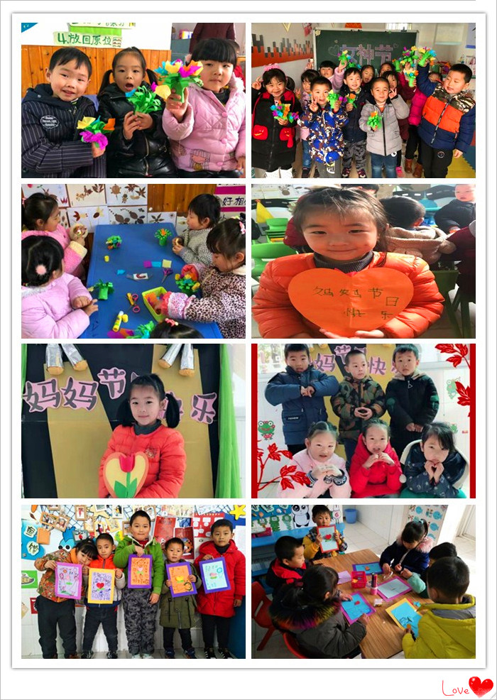 各班的活动精彩纷呈:中一班小朋友制作了漂亮的贺卡, 中二班小朋友制作了精美的爱心卡,中三班小朋友制作了好看的花束。一件件精美的作品表达出对妈妈、长辈的感恩与祝福。